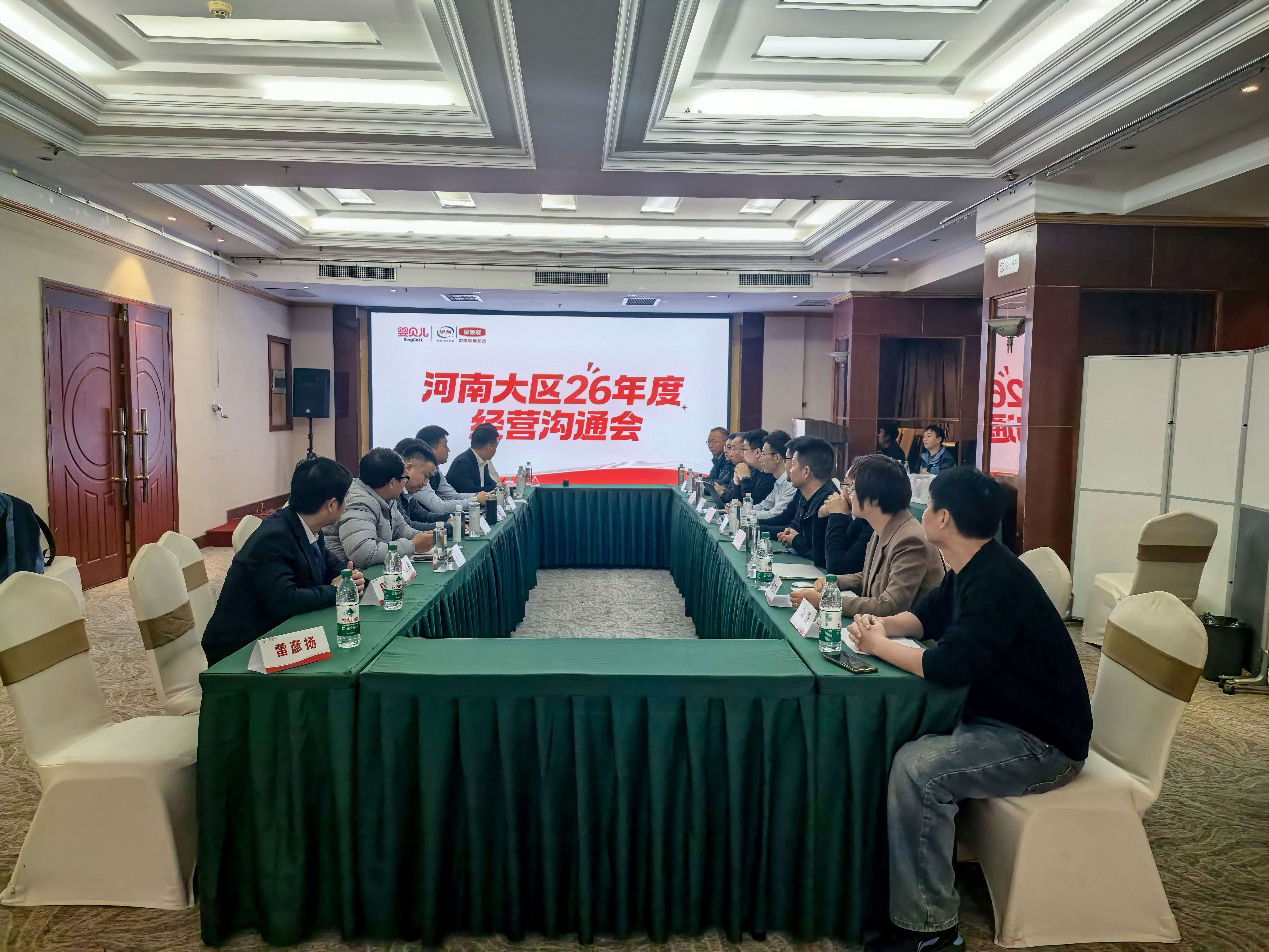 在随后召开的河南大区2026年度经营规划会上,伊利金领冠河南营销总部重点客户经理丁凡、豫西省区经理陈哲、豫南省区经理黄文涛,与华恩金年会·jinnian(金字招牌)诚信至上河南大区总经理张强、副总经理高普、采购负责人郑召斌携核心团队共同出席。