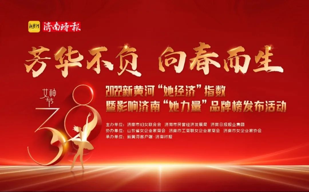 2022年的三八妇女节注定是一个不平凡的日子,由济南市妇联、济南民营经济发展局、济南报业集团、山东省女企业家商会、济南市女企业家协会、济南市女企业家商会联合举办的“芳华不负 向春而生”2022新黄河“她经济”指数暨影响济南“她力量”品牌榜发布会于3月7日在省会“印象济南罗芙威宫”举行。